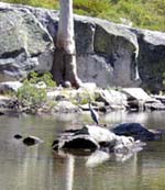 on the steep slope far above the creek. Tiny gnats buzzed around