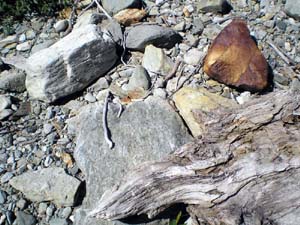 reddish-brown clasts and breccia, ranging from basalt to andesite.