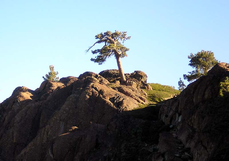 Morning Sunlight on Jeffrey Pines Above Rock Lake