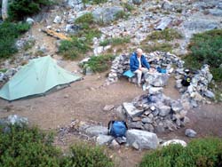 perhaps another half-mile. At its crest, we found a dusty campsite