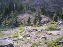 trail ascended through brush, crossed the rocky outlet, and