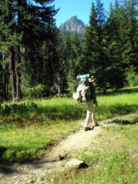 On the narrow trail down to Campbell Lake we passed eight backpackers