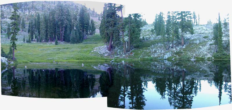 A Fine Horse Camp in a Grove of Red Firs Above a Broad Green Meadow