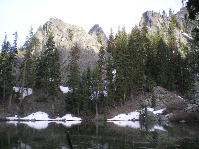 Three Spires Loom Above the East Shore of North Yolla Bolly Lake